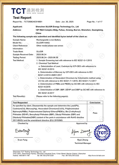 SUJOR aims to provide customers tailored lithium ion battery packs. We could not only provide customers with customized services for individual components such as battery cell, BMS and battery structure, but also offer optimal battery integrated solutions (cell+BMS+structure) based on customer’s detailed requirement.